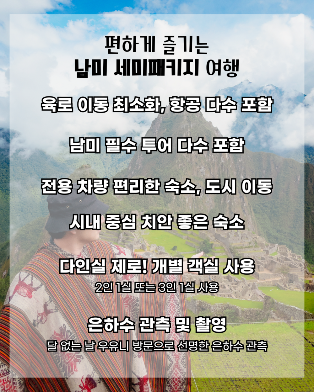 [얼리버드 할인, 7월 남미 투어 모집] 2030 남미 3개국 세미패키지 여행 (페루, 볼리비아, 칠레)