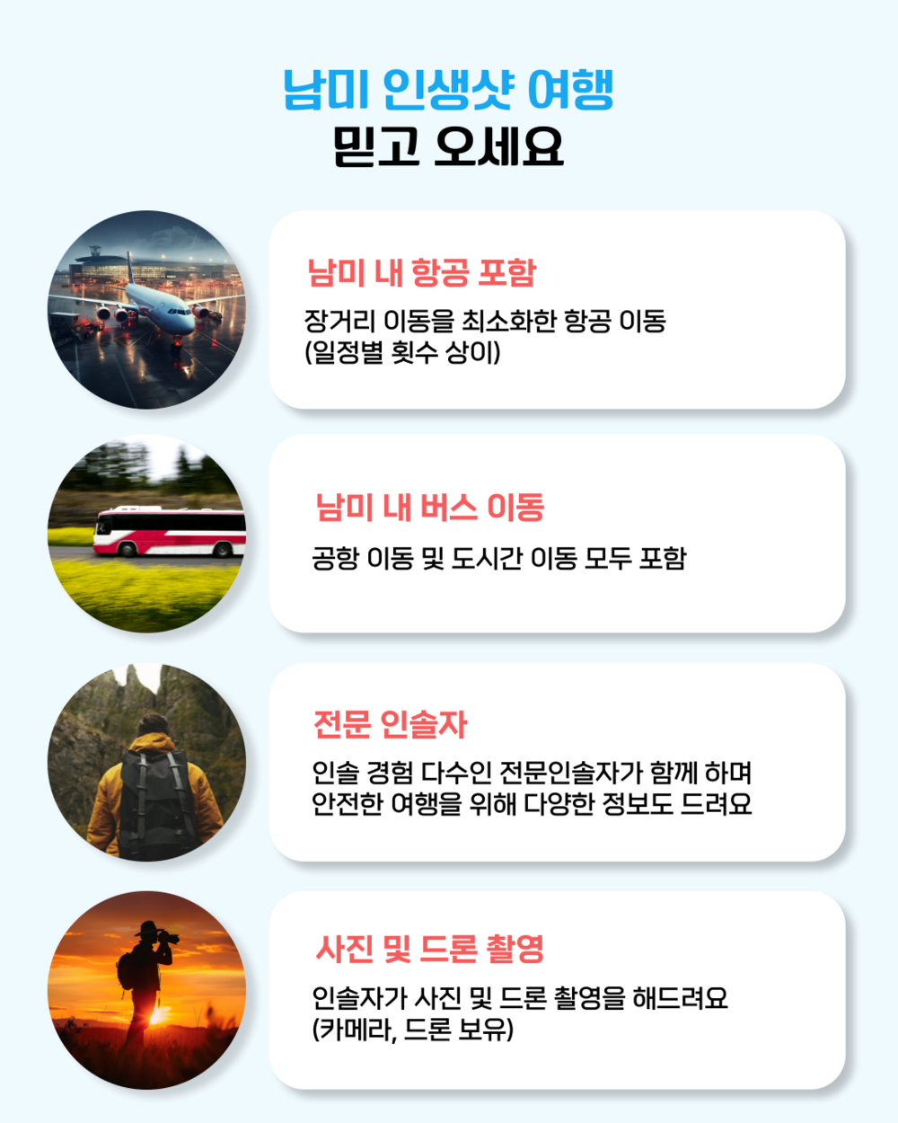 * 세미패키지 특성상 인솔자가 한국에서 동행하지 않고 현지 공항에 마중나가는 상품입니다.