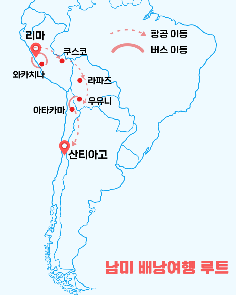 리마 - 와카치나 - 쿠스코 - 마추픽추 - 라파즈 - 우유니 - 아타카마 - 산티아고